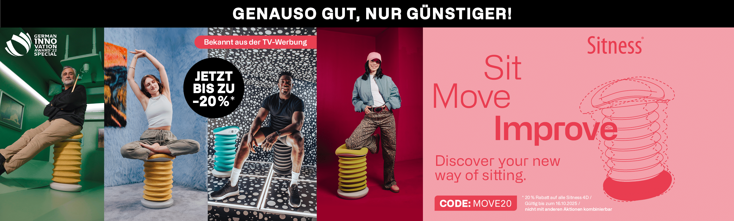Entdecken Sie die neue Art zu sitzen – und sparen Sie 20% auf Ihren Sitness 4D