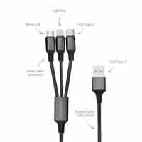 - Micro-USB, USB-Typ-C und lightning-Anschluss