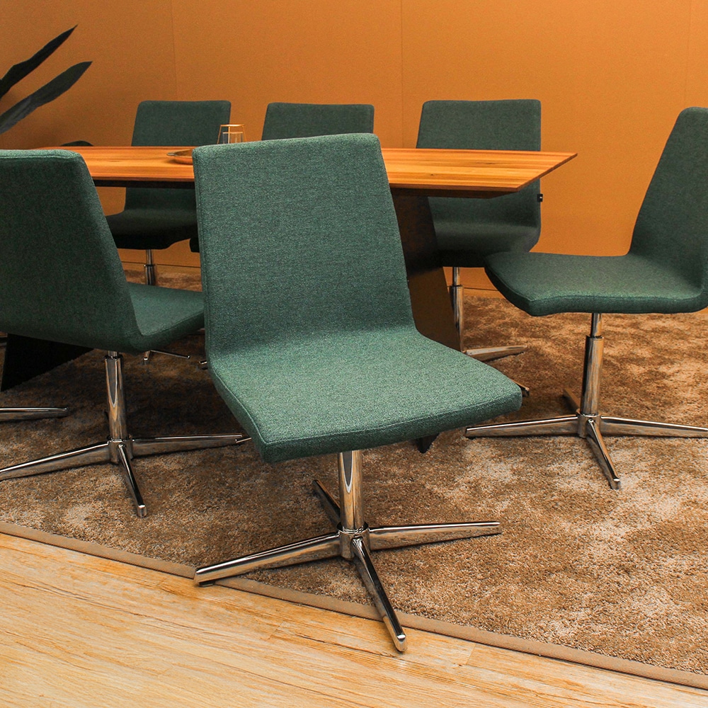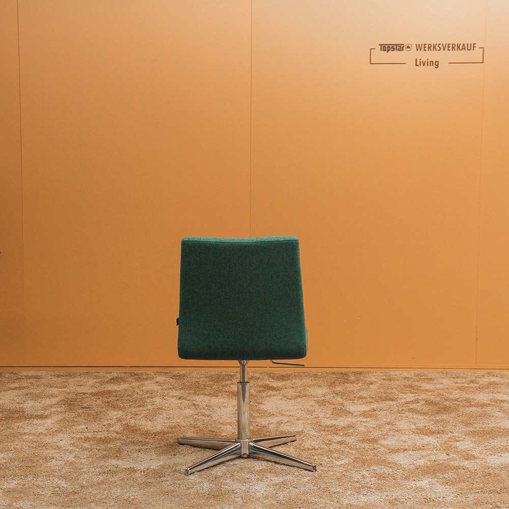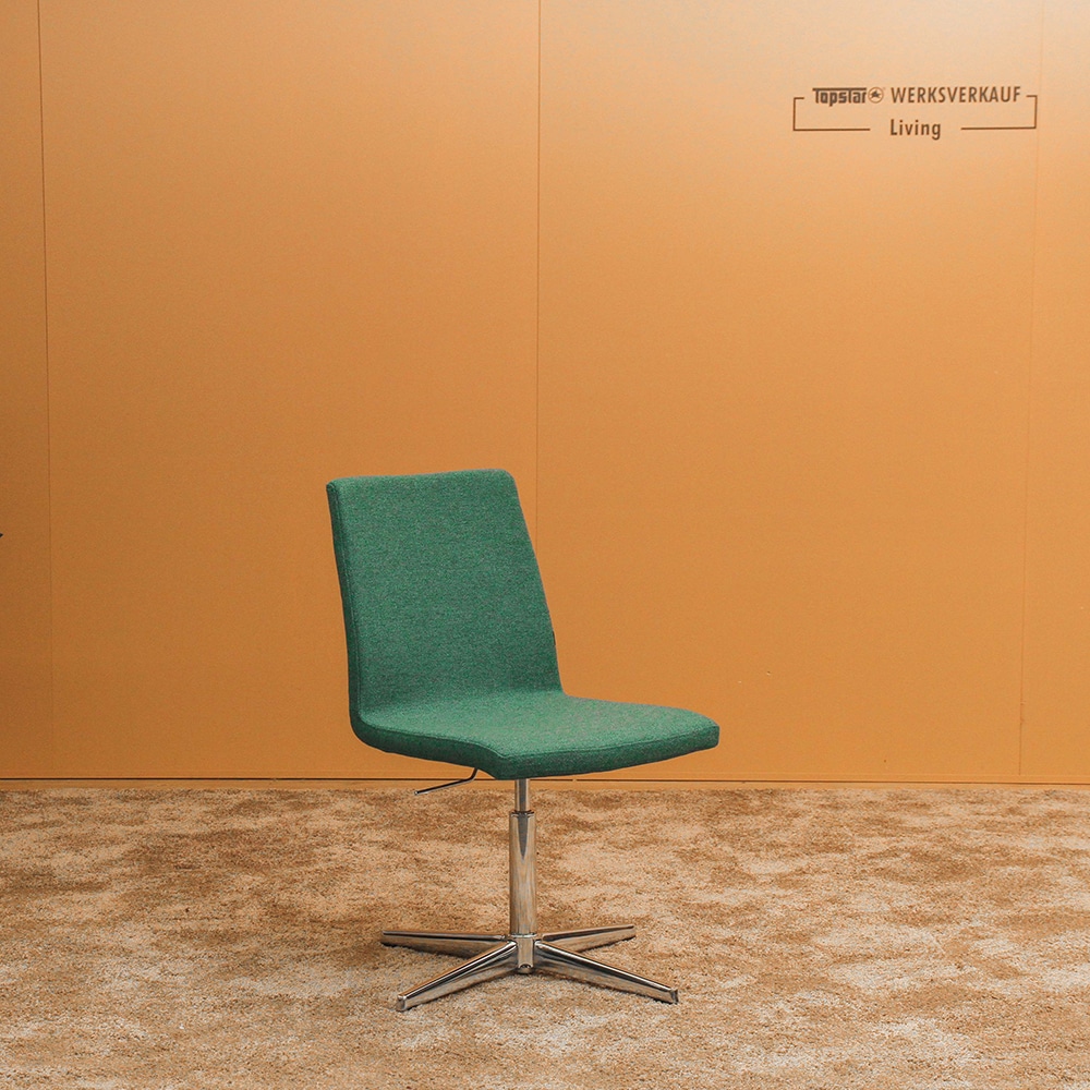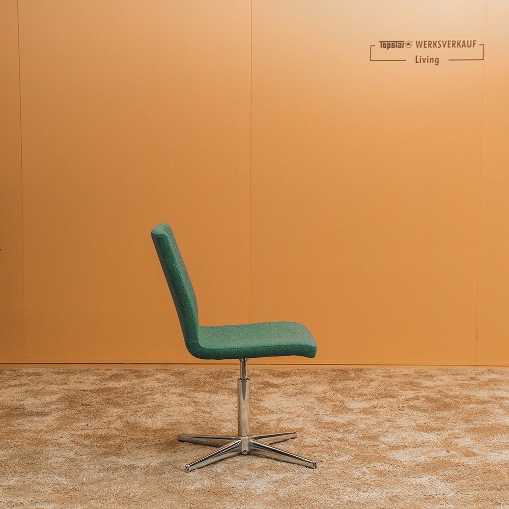 - Bequemer Drehstuhl, mit Stahlfußkreuz und Fußgleitern (4 Fuß) und verchromter Gasfeder