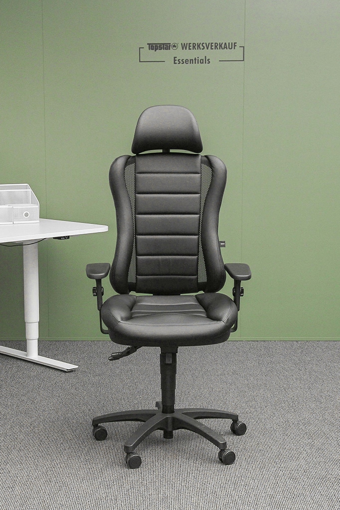 - Ergonomische taillierte Rückenlehne, über Raster-Mechanik höhenverstellbar mit integrierter Lendenwirbelstütze