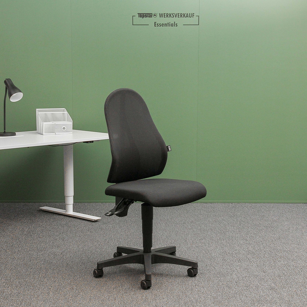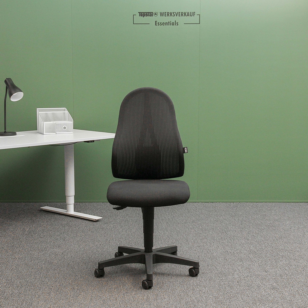 - Design-Rückenlehne mit atmungsaktivem Netzbezug, stufenlos höhenverstellbar