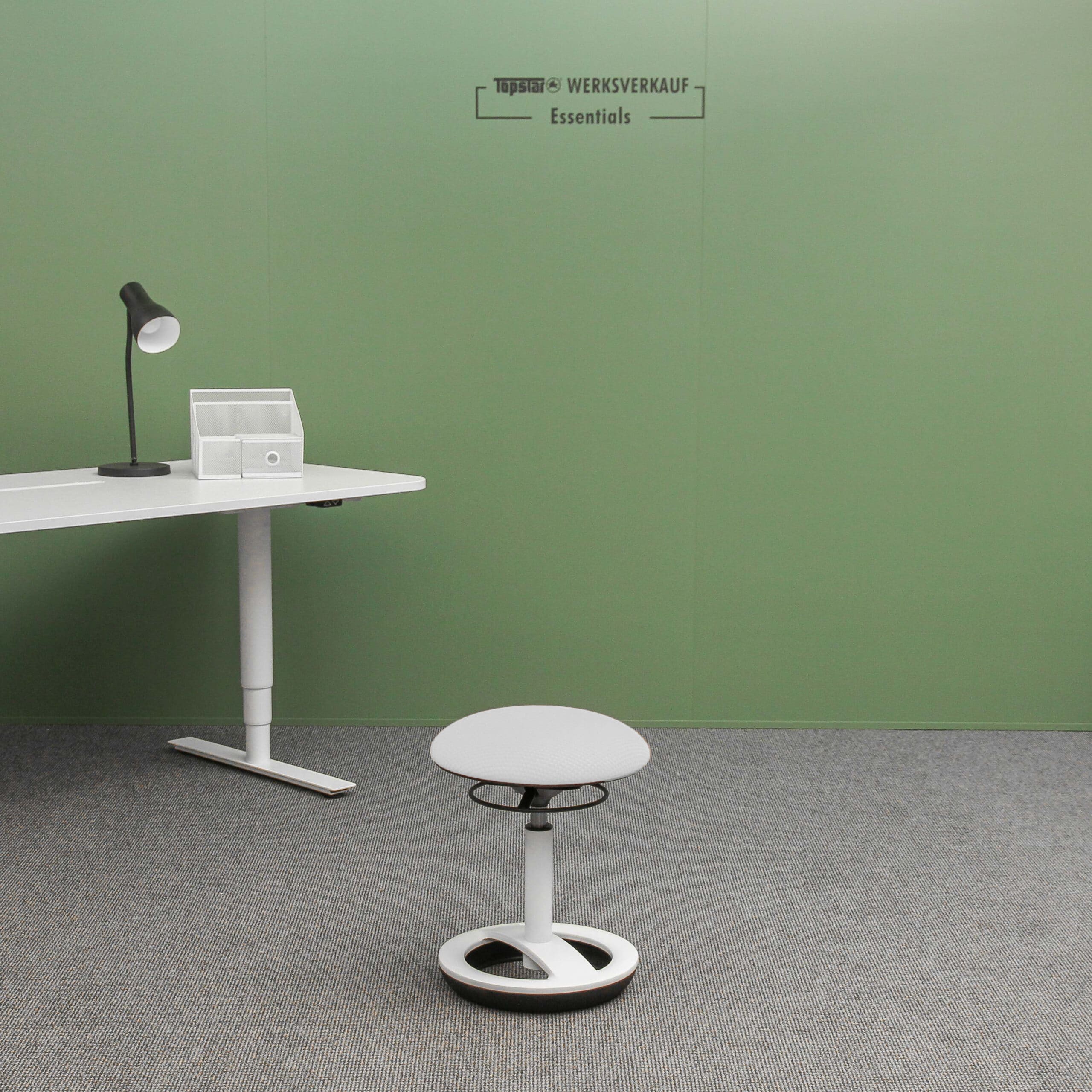 - Stufenlose Sitzhöhenverstellung mit weißlackierter Gasfeder über Ringauslösehebel unter dem Sitz