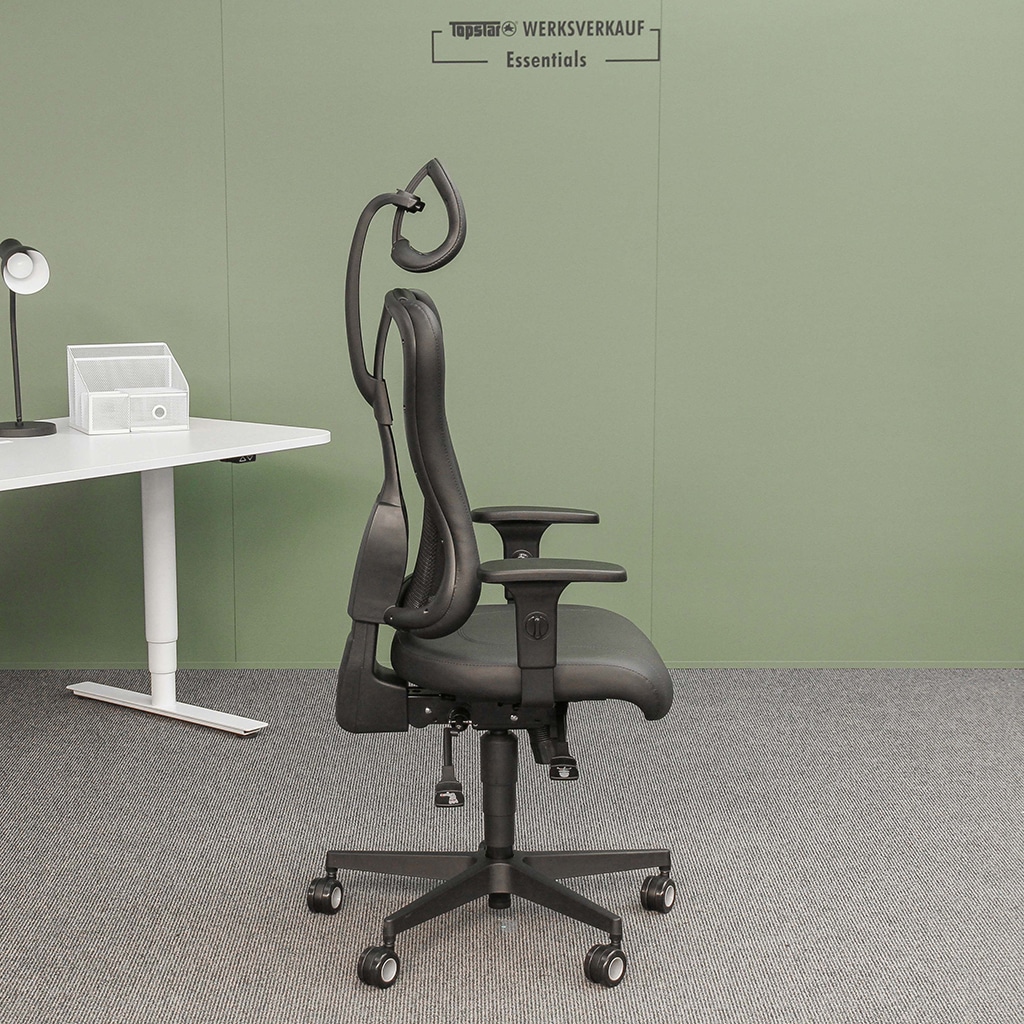 - Hohe, konturgeformte Rückenlehne mit seitlicher Führung für entspanntes Sitzen