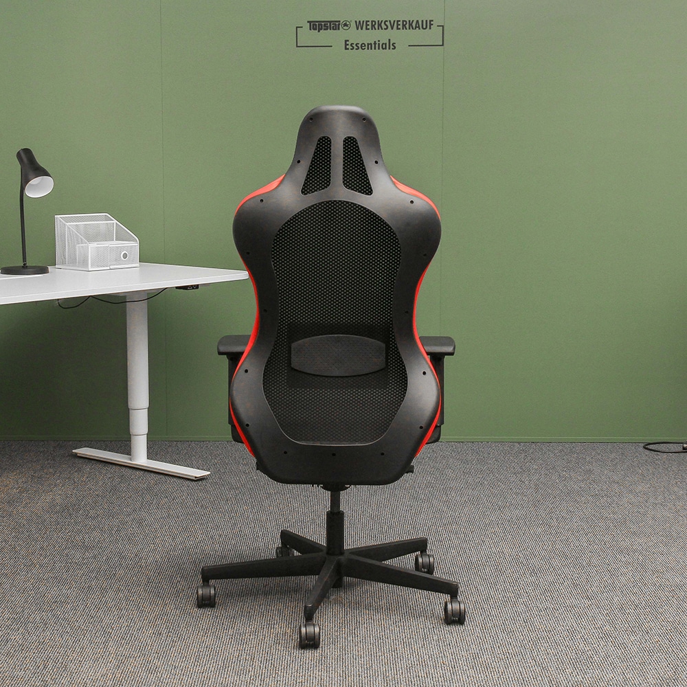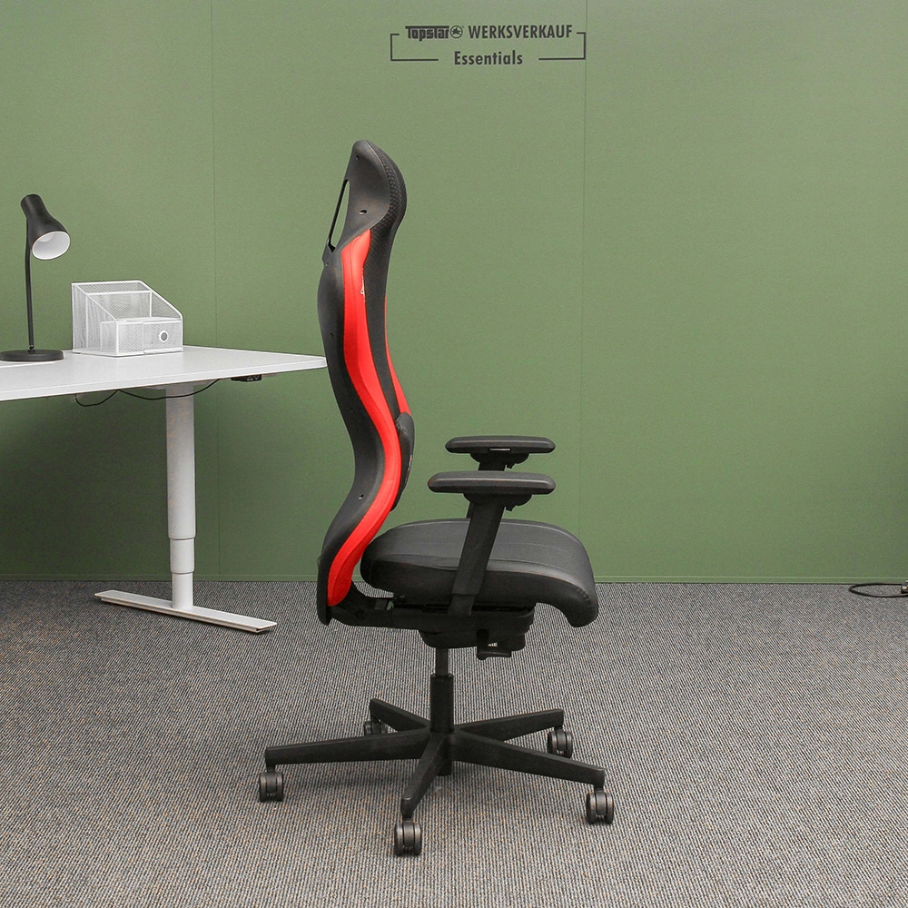 - Großes und standsicheres Kunststoff-Fußkreuz schwarz, ausgerüstet mit lastabhängig gebremsten und modernen Sicherheitsdoppelrollen für Teppichböden im Speichen-Design