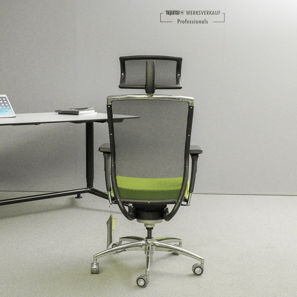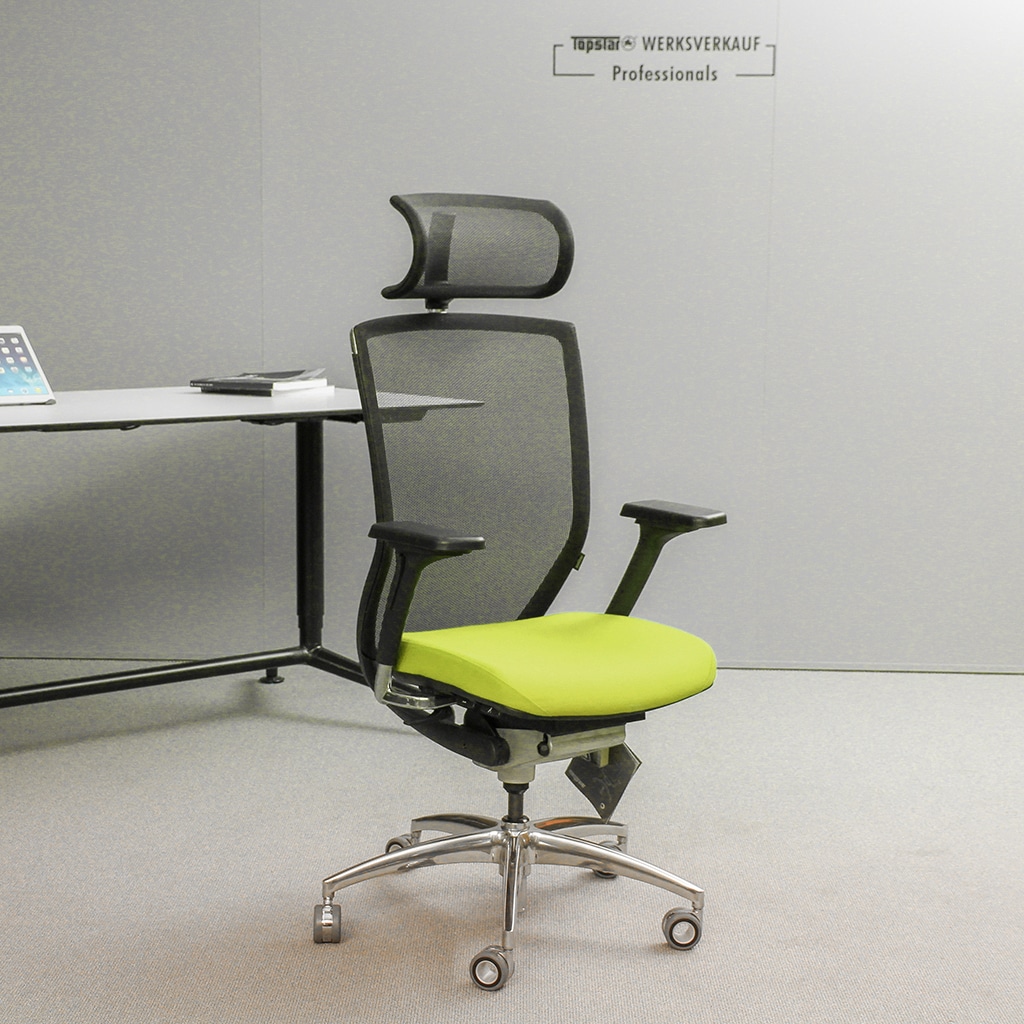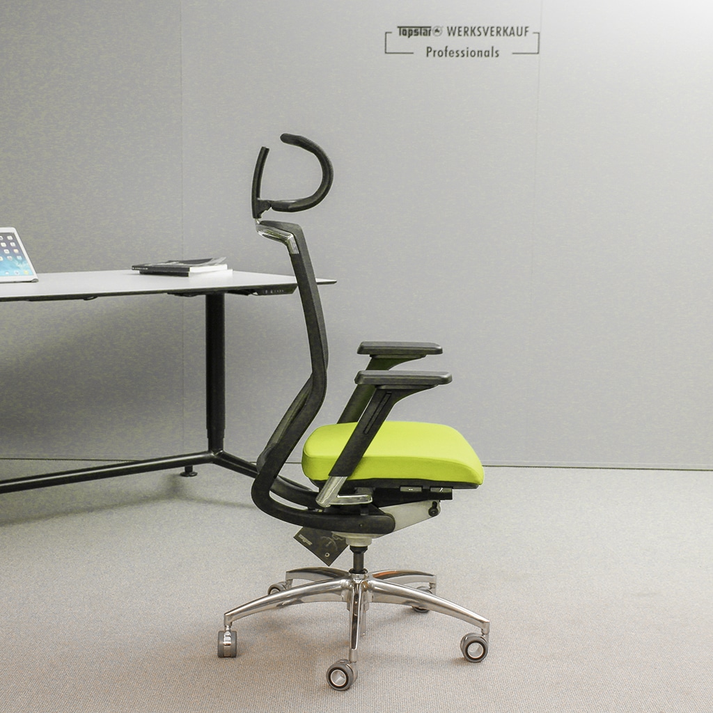 - Kopfstütze mit atmungsaktiver Netzbespannung, höhenverstellbar und pendelnd gelagert