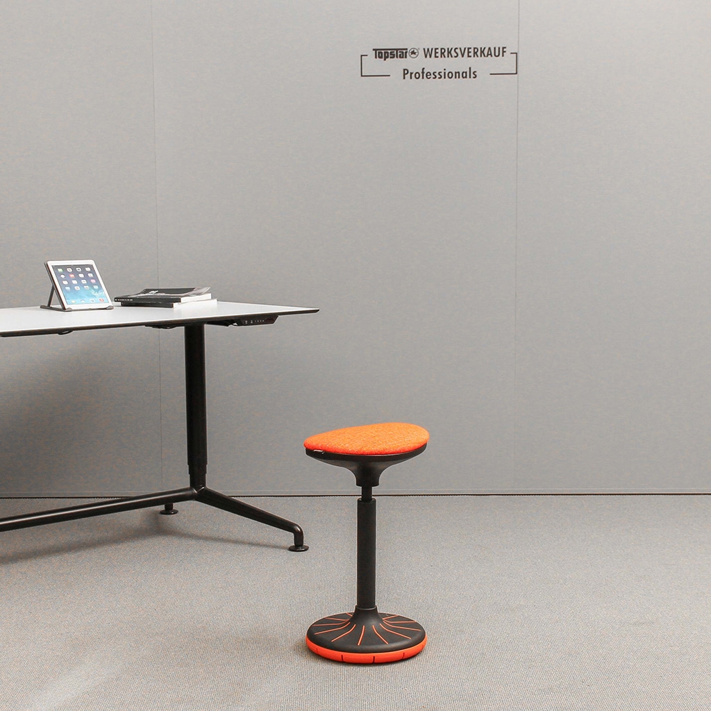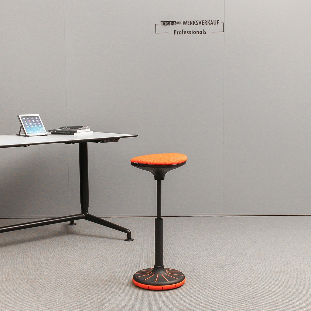 - Der Hocker sorgt für Bewegung am Sitz- wie auch am Stehplatz