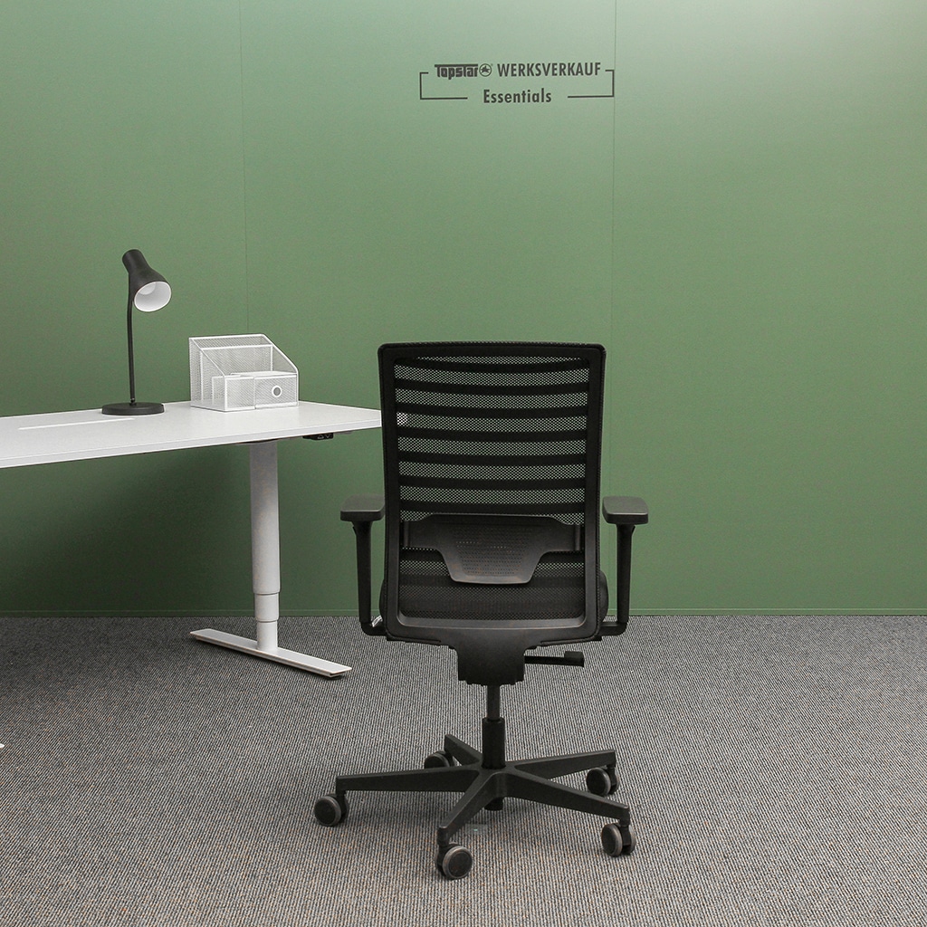 - Synchronmechanik mit integrierter Sitztiefenverstellung, Federkraft passt sich automatisch an das Nutzergewicht an, kann aber durch den versenkbaren Drehgriff feinjustiert werden.